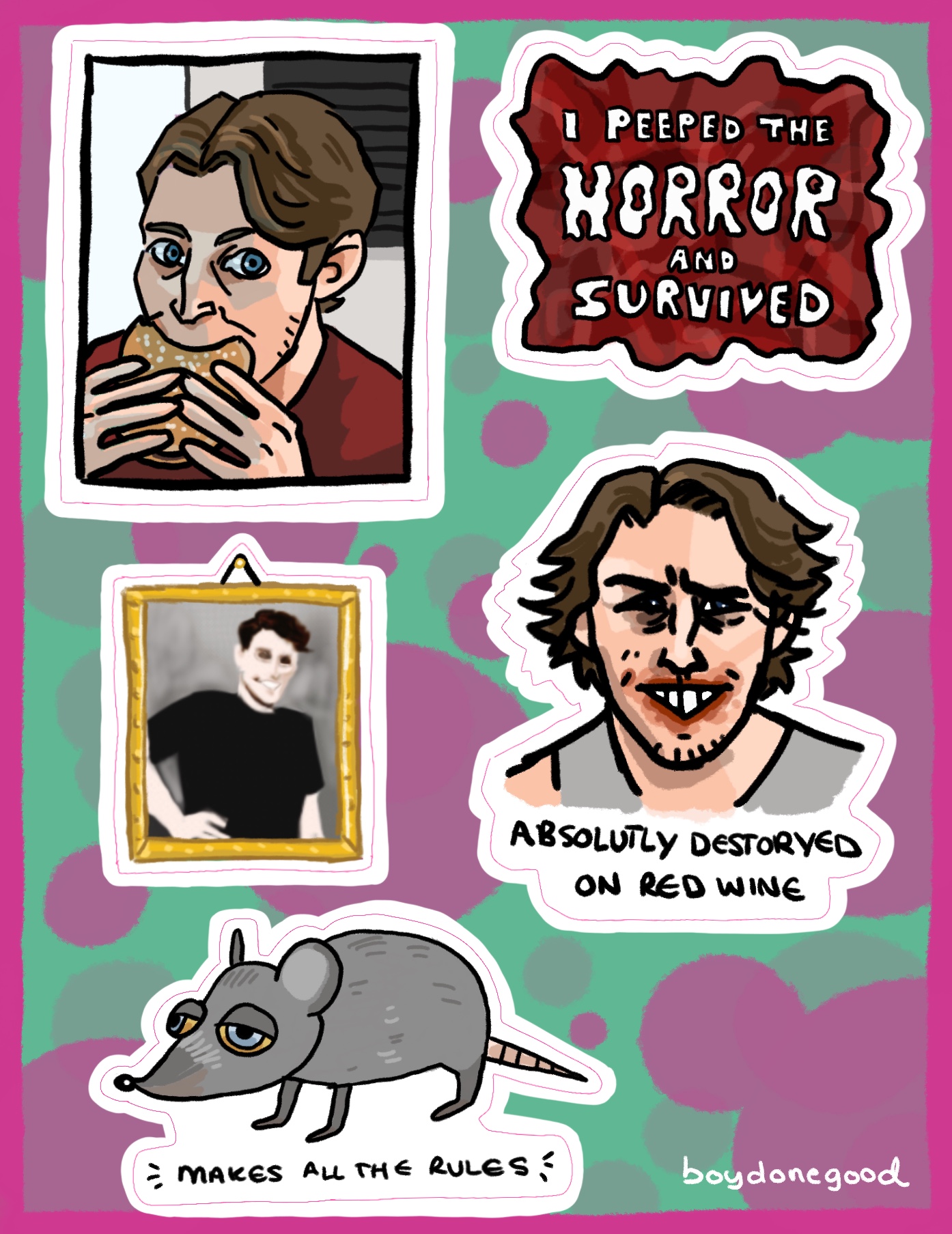 This sheet has 5 stickers and is 4.6 x 6 inch Art by me, boydonegood