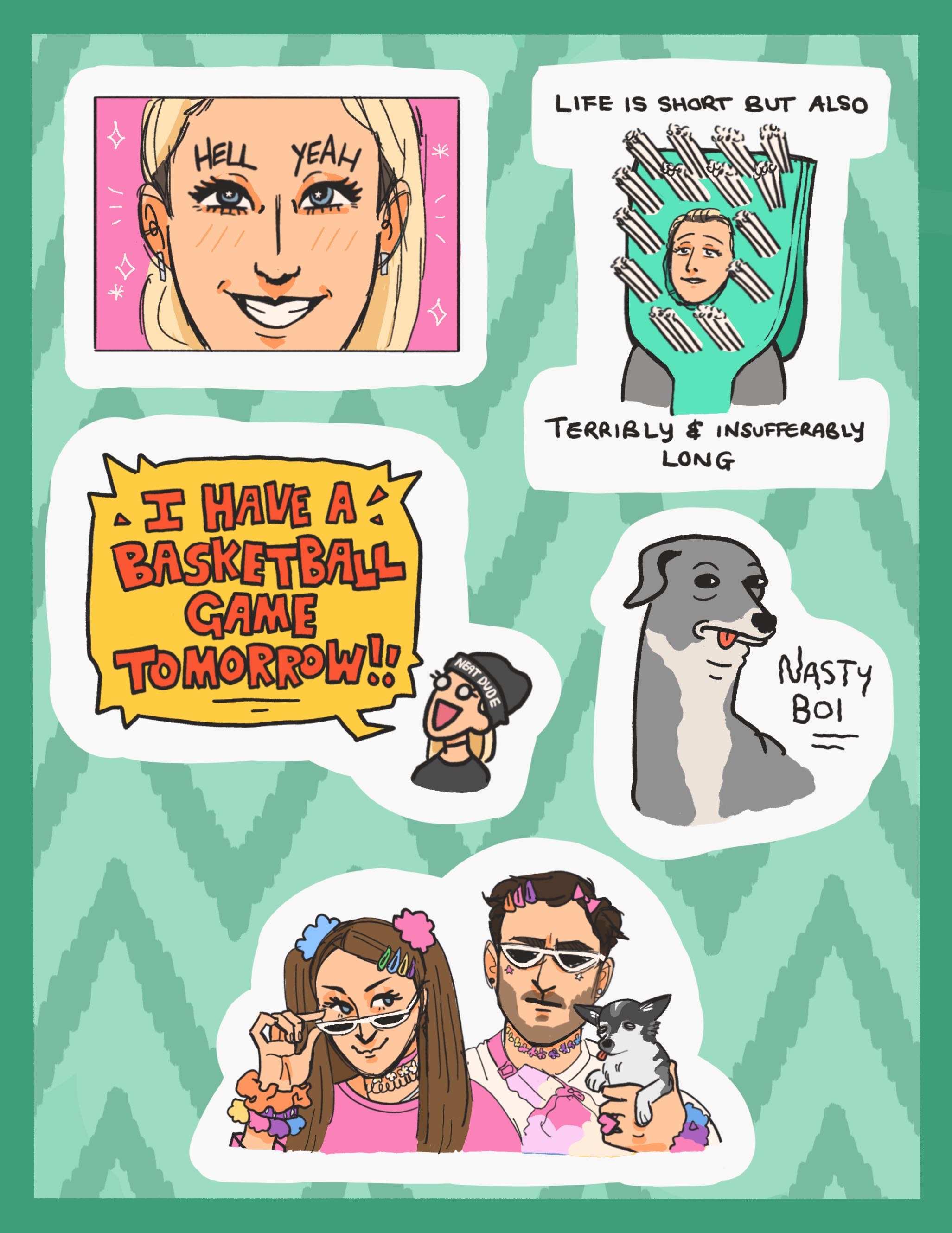 This sheet has 5 stickers and is 4.6 x 6 inch Art by me, boydonegood